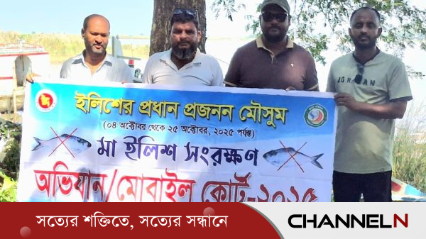 চরভদ্রাসন পদ্মা নদীতে অভিযান: ১০ হাজার মিটার কারেন্ট জাল এবং ২ কেজি ইলিশ মাছ জব্দ