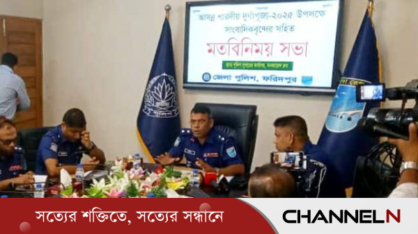 শারদীয় দূর্গা পূজা উপলক্ষে ‌ফরিদপুরে সাংবাদিকদের সঙ্গে জেলা পুলিশের মতবিনিময়